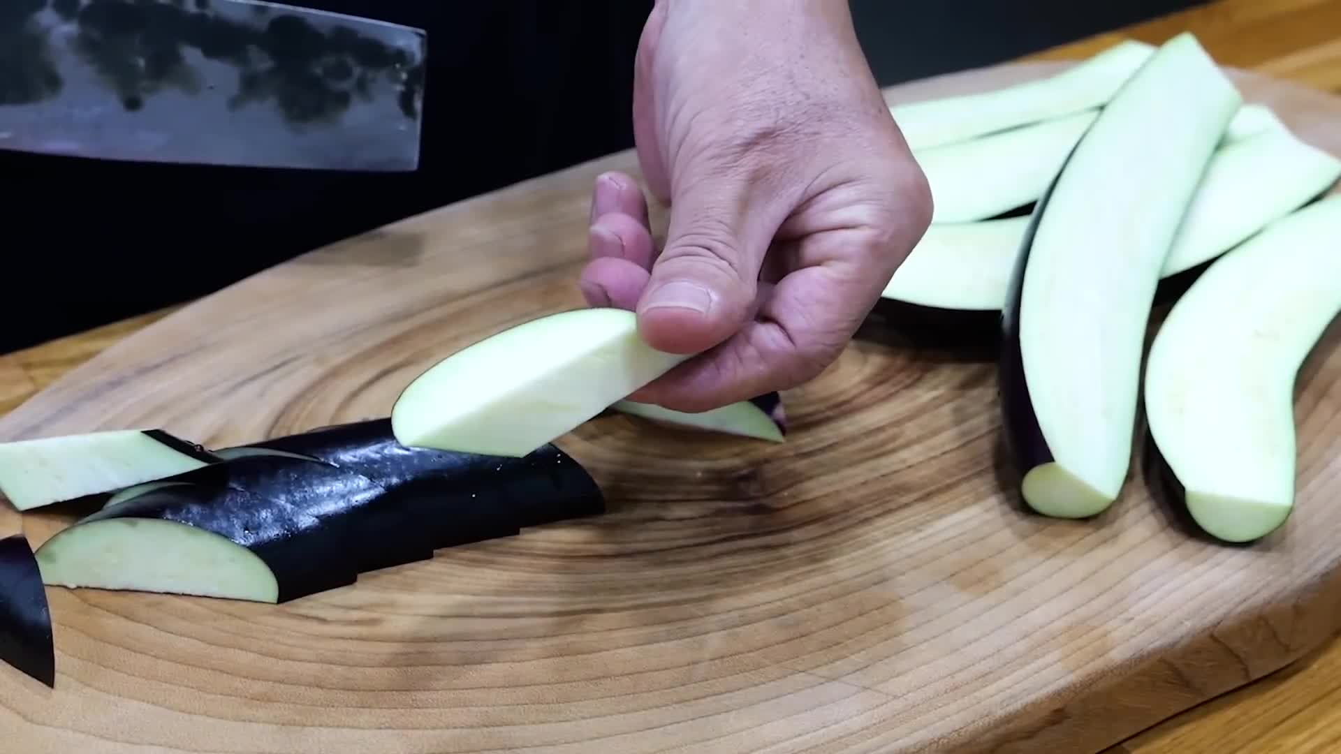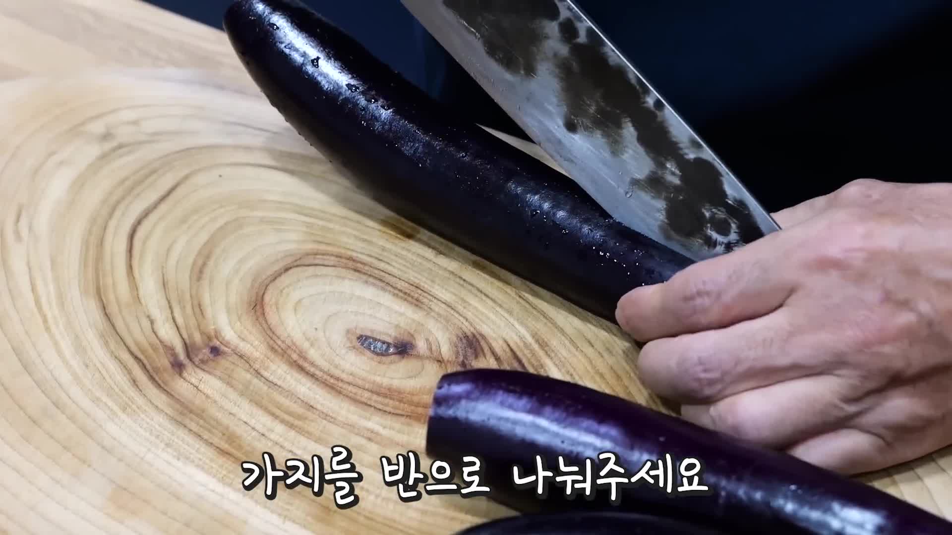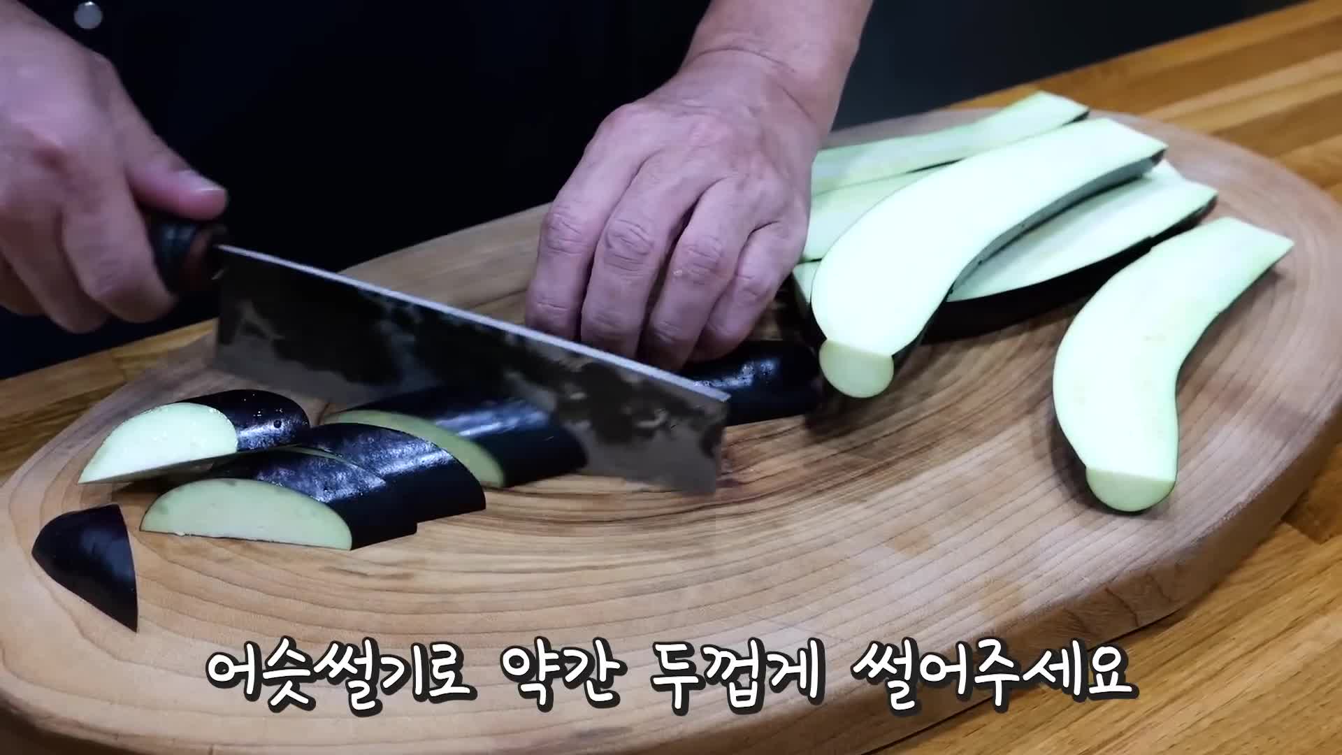 - 가지는 2~3cm 두께로 둥글게 썬다.